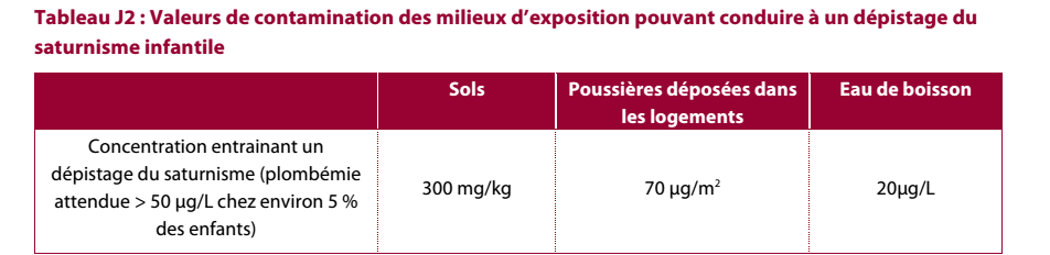 Rapport HCSP à partir desquels on dépiste et où l’on peut s’attendre à avoir une plombémie supérieure à 50µg/L (seuil de diagnostic du saturnisme)